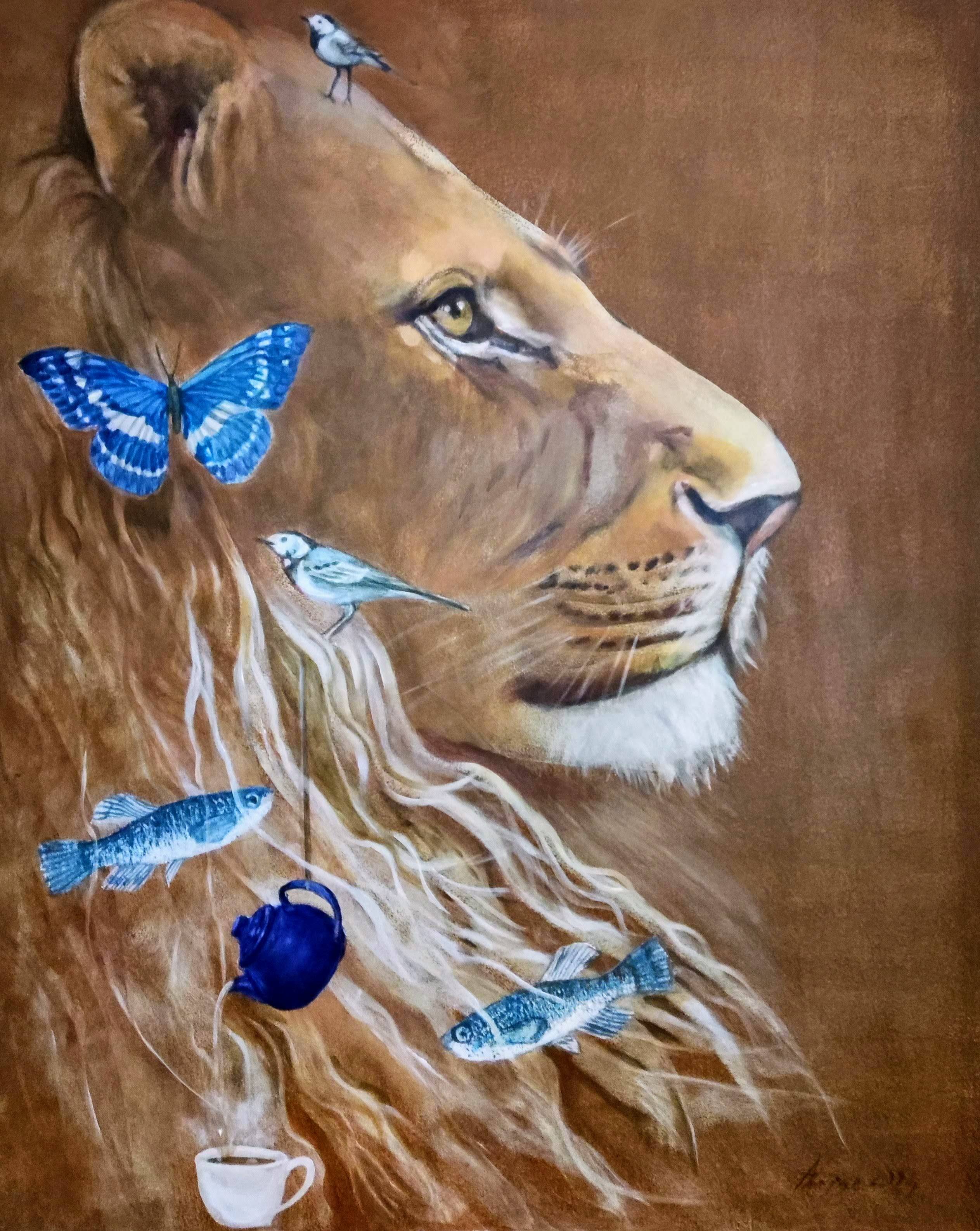 Kolory cynobru, złota i miękkich beży podkreślają nie tylko piękno postaci, ale także oddają subtelną melancholię i jednocześnie majestat chwili, jaką uchwycił artysta. Obraz "Łabędzi Śpiew" to nie tylko wyraz kunsztu malarskiego, ale również poetycka wizja o ulotności piękna i chwili.