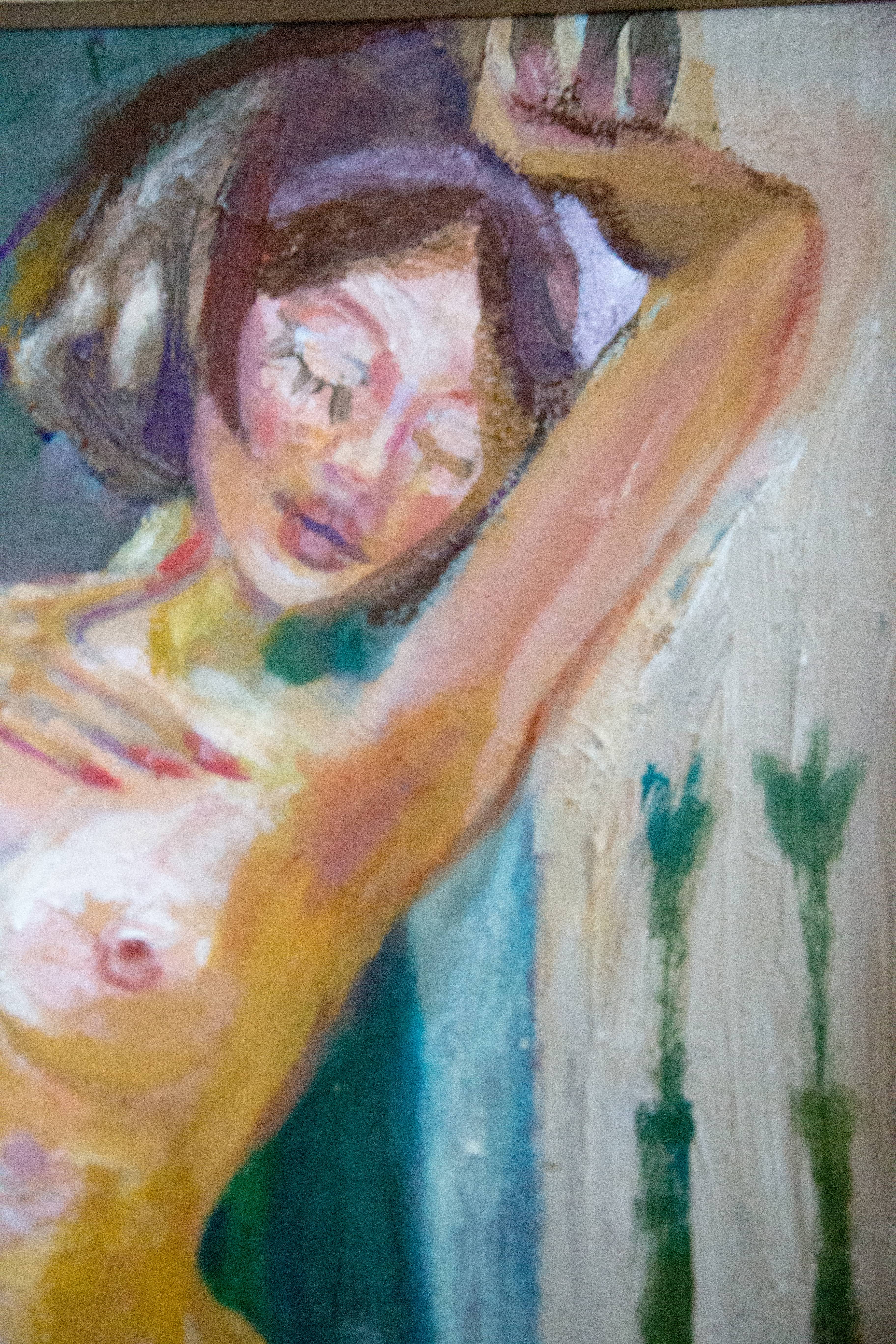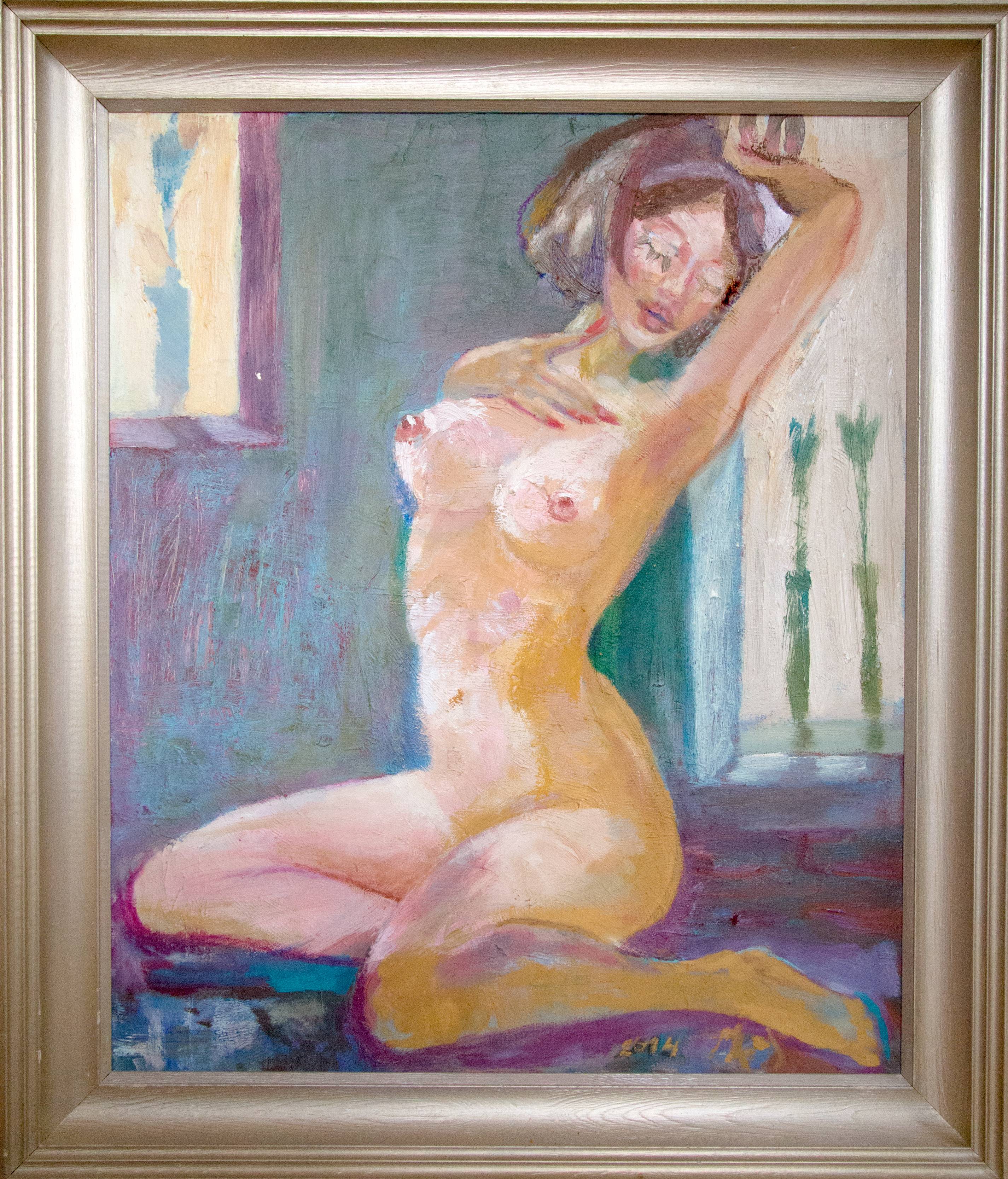 Wygrzewanie się w słońcu jak jaszczurka, doprowadza do rumieńców na twarzy. Kąpiel słoneczna, gibkość ciała, miękkość kształtów przeistacza kobietę w boginię zmysłów. Mogą pozazdrościć zerkające z okien tulipany.