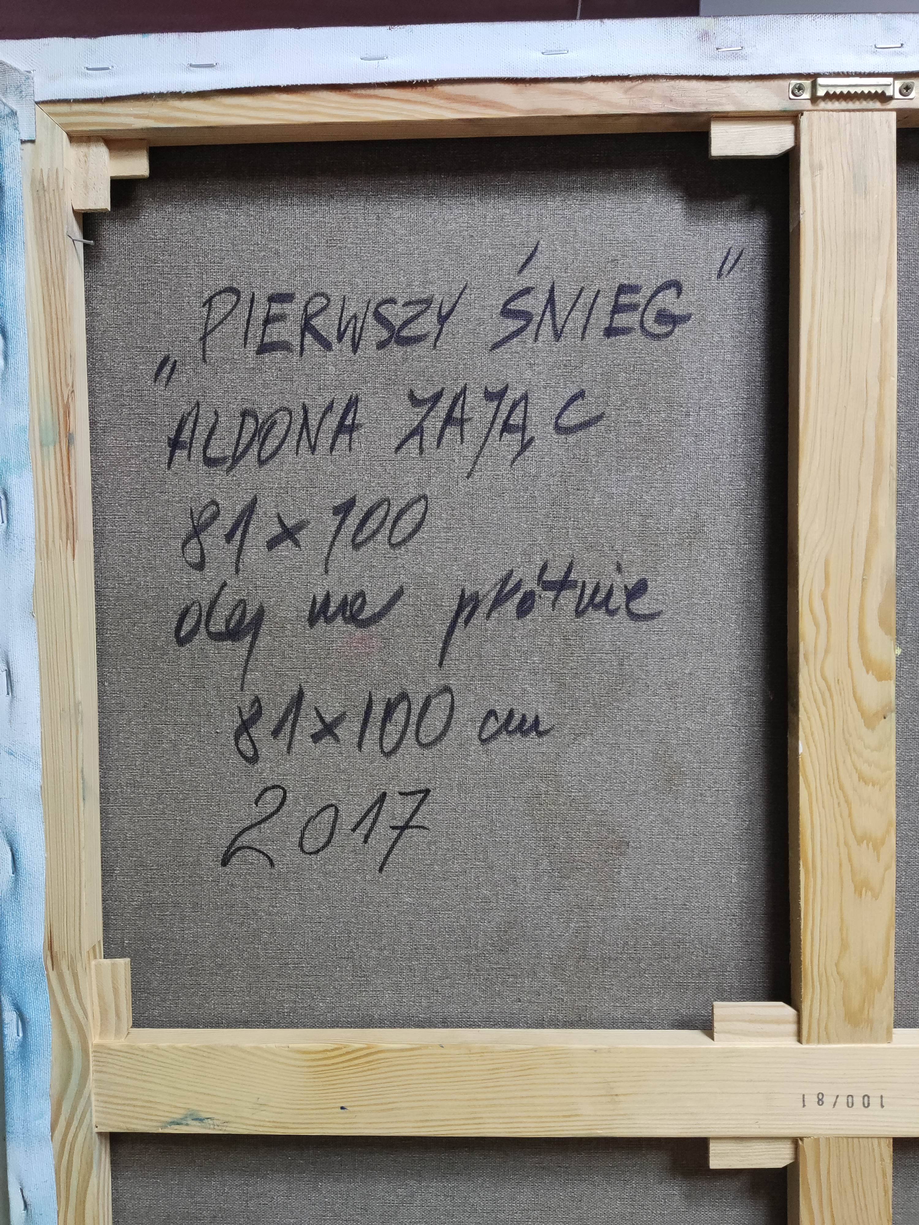 "Pierwszy Śnieg" to tytuł obrazu, który w niezwykły sposób oddaje moment, kiedy na świat spadły pierwsze płatki śniegu zmieszane z kroplami deszczu. Ten ręcznie wykonany obraz to abstrakcja, będąca artystycznym wyrazem chwili, która zrodziła się w mojej wyobraźni w trakcie tej niezwykłej pogody.