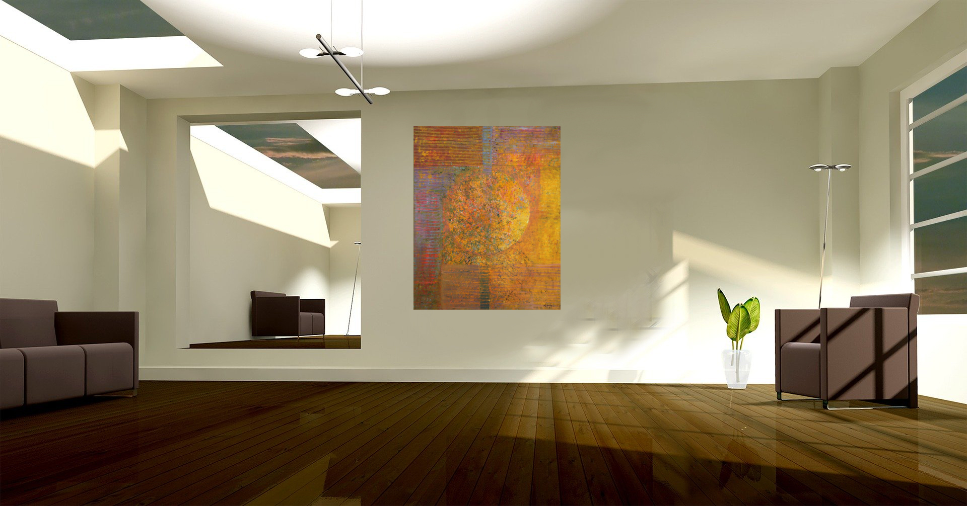 "Przez dziurkę od klucza" to abstrakcyjny obraz olejny, który przenosi widza w świat intymnych doznań i głębokich emocji. Utrzymany w ciepłych barwach, z dominującymi odcieniami pomarańczy, dzieło emanuje ciepłem i pasją, a warstwowe malowanie oraz bogata struktura nadają mu niezwykłej głębi.