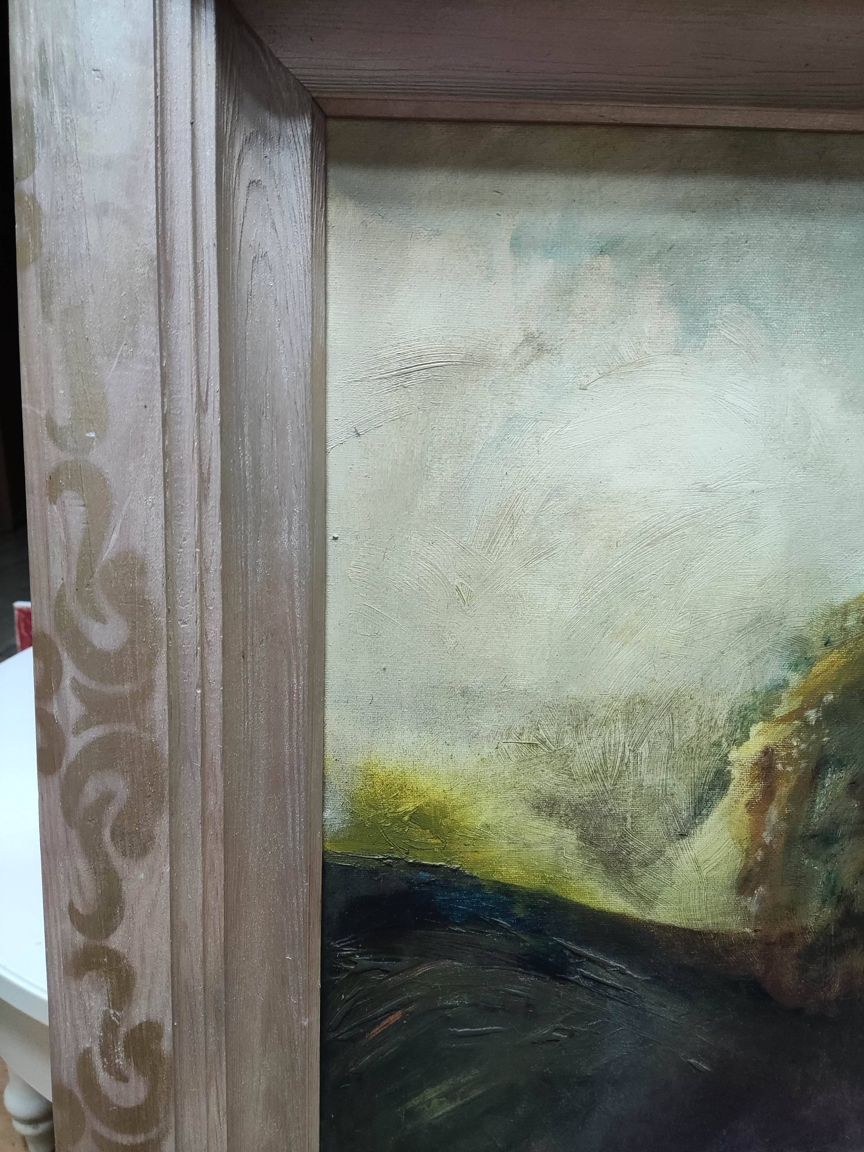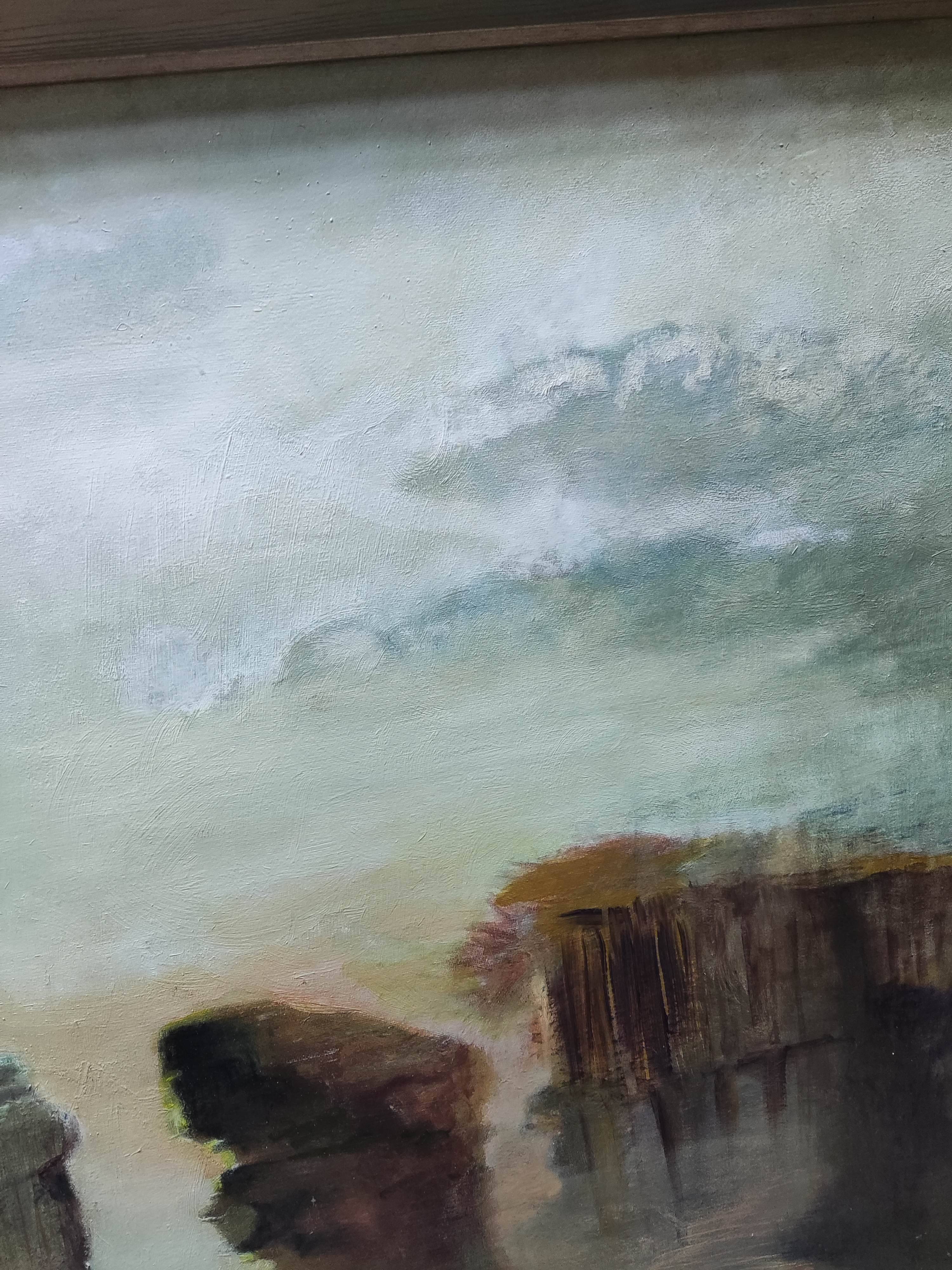 Tło tego niezwykłego świata jest zainspirowane słowami: „Za oknem fruwa niebo i kąpie się morze”. Te poetyckie obrazy stają się rzeczywistością na płótnie, gdzie niebo zdaje się płynąć nad głowami, a morze z wolna przenika krajobraz, tworząc harmonijną, niemalże surrealistyczną scenerię.