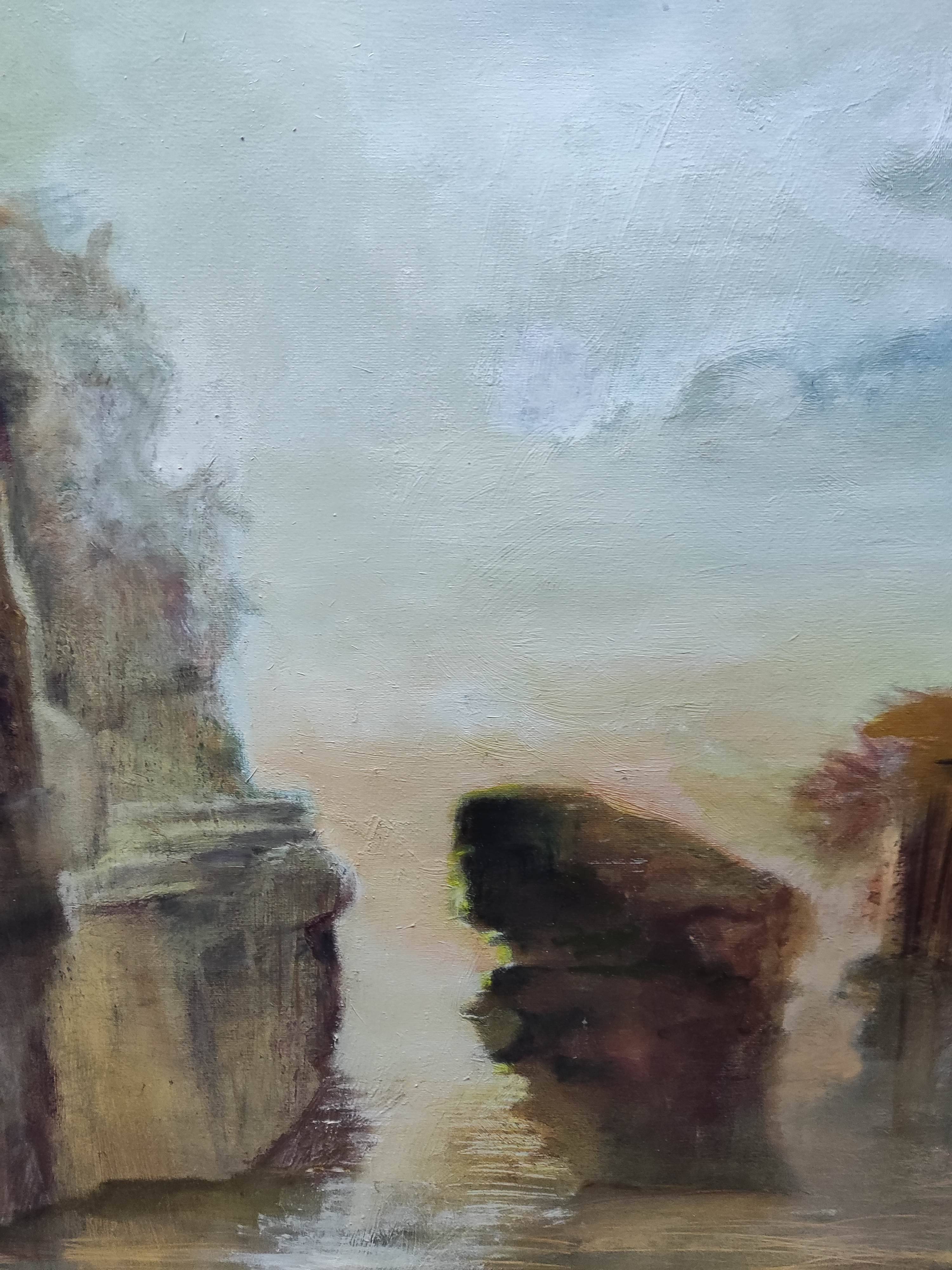 Budowle na wyspach, owinięte dziką roślinnością, dodają kompozycji tajemniczości. To ruiny nieznanej cywilizacji, które kryją w sobie opowieści o dawnych czasach. Ich obecność sugeruje zarówno upadek, jak i odrodzenie, cykliczność życia i historii.