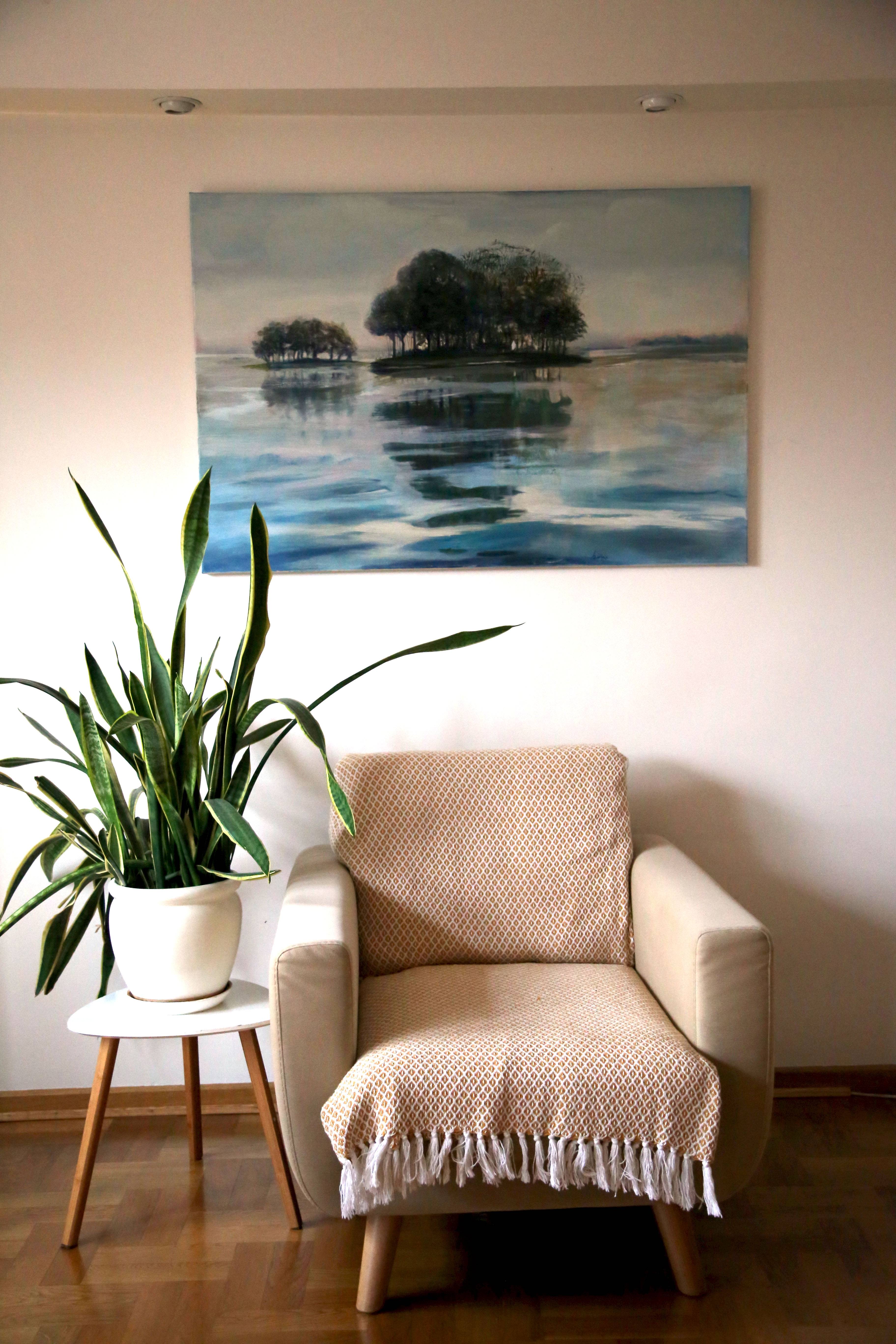 Kompozycja utrzymana jest w chłodnych tonacjach, z dominującą gamą błękitów i brązów, co podkreśla poczucie dystansu i surowości tego miejsca. Niebieskie odcienie przypominają zimne, arktyczne wody, które otaczają te odległe skrawki ziemi, podczas gdy brązy mogą symbolizować jałowość i bezczasowość ich egzystencji.