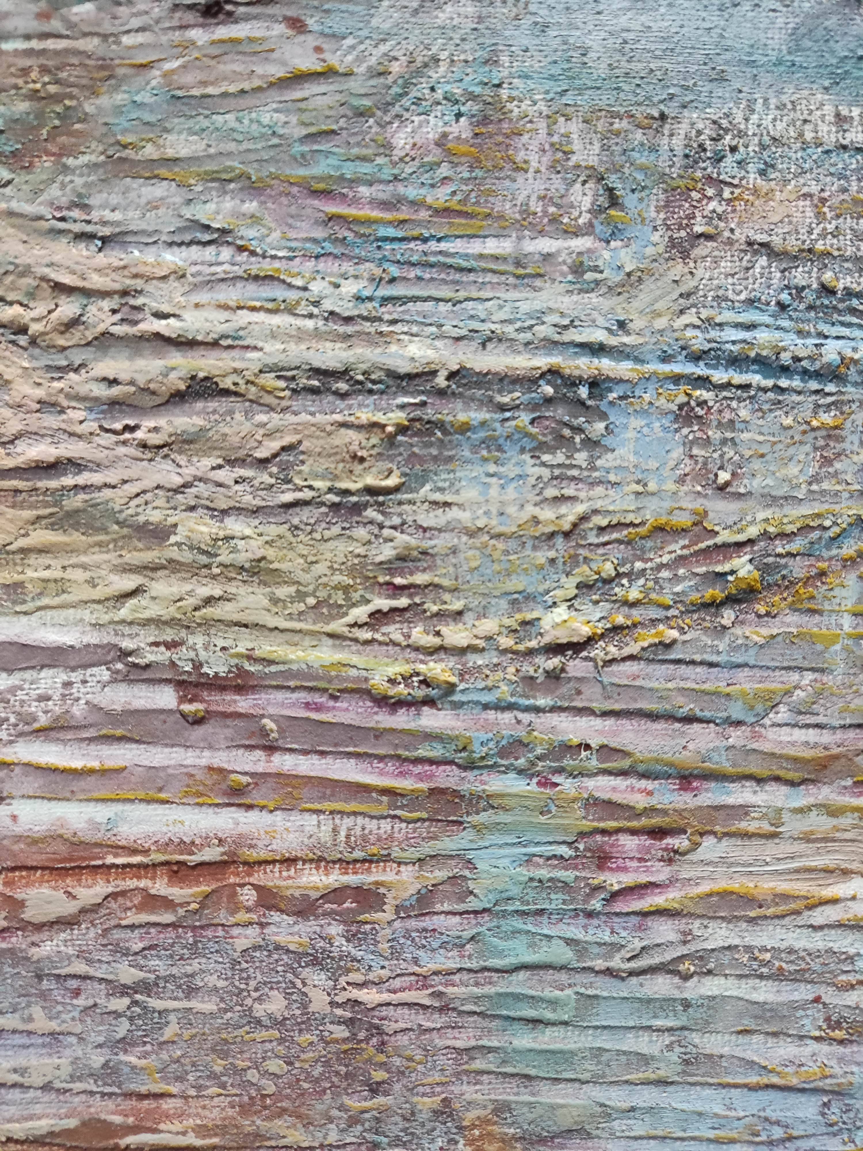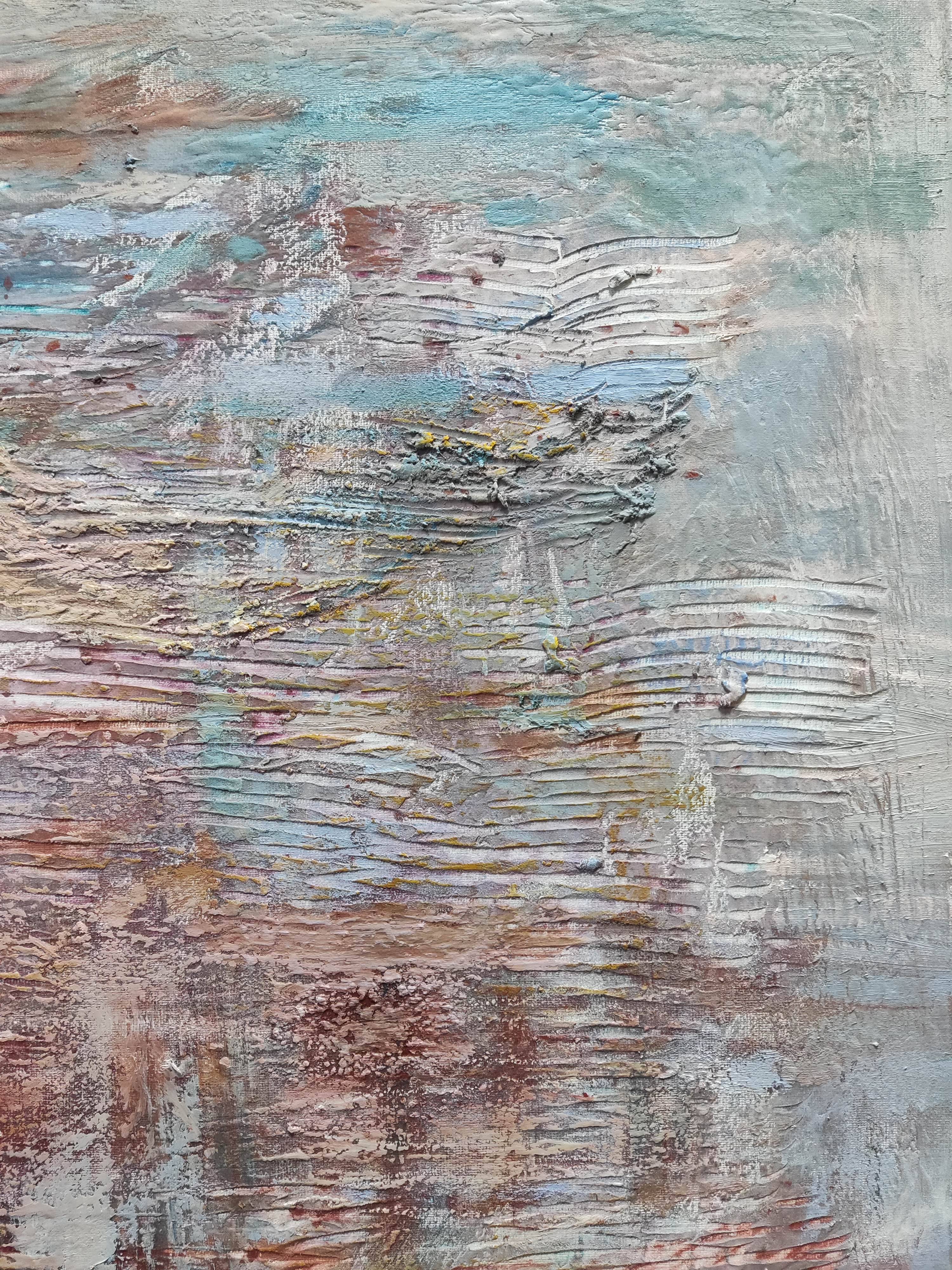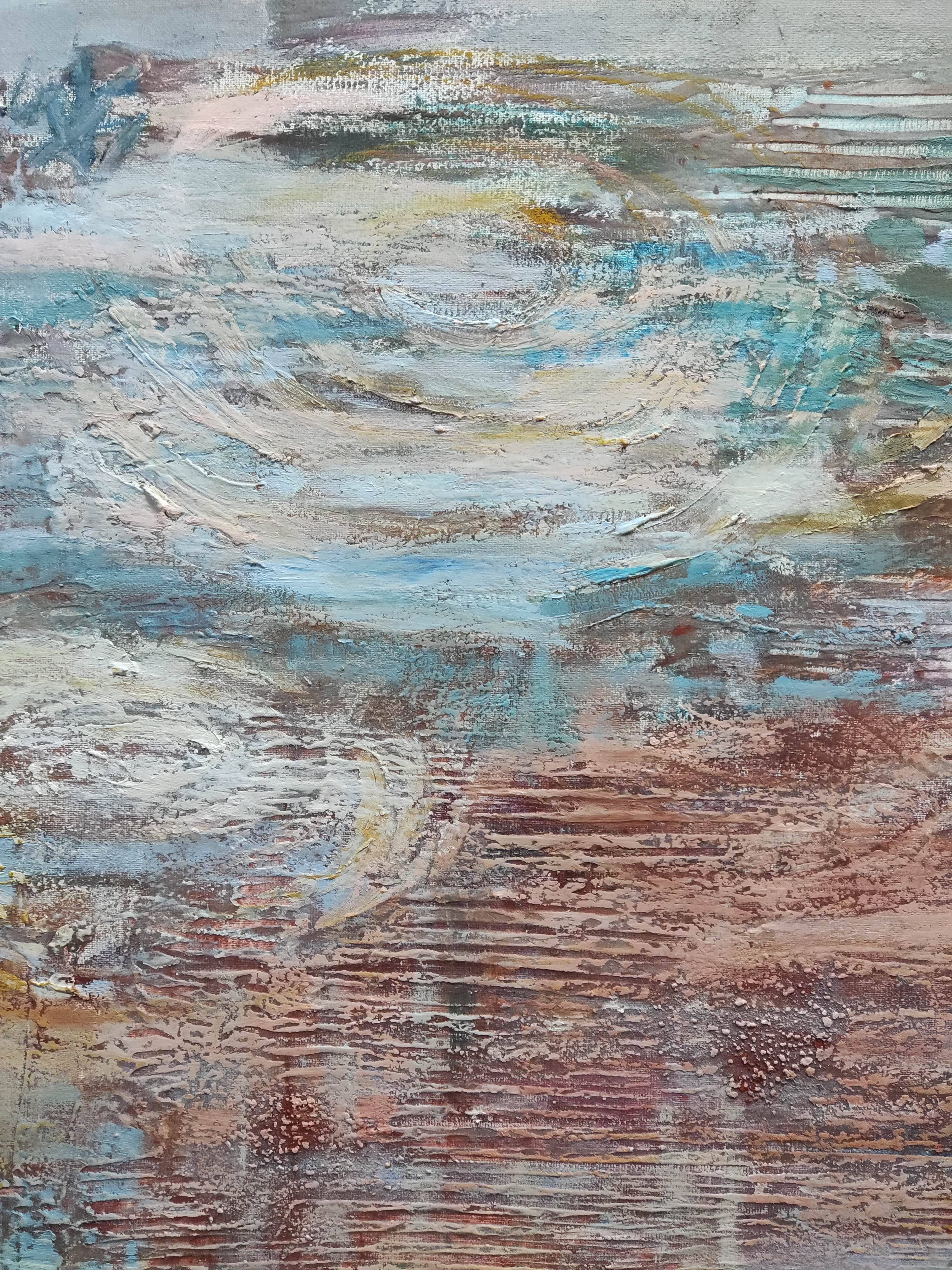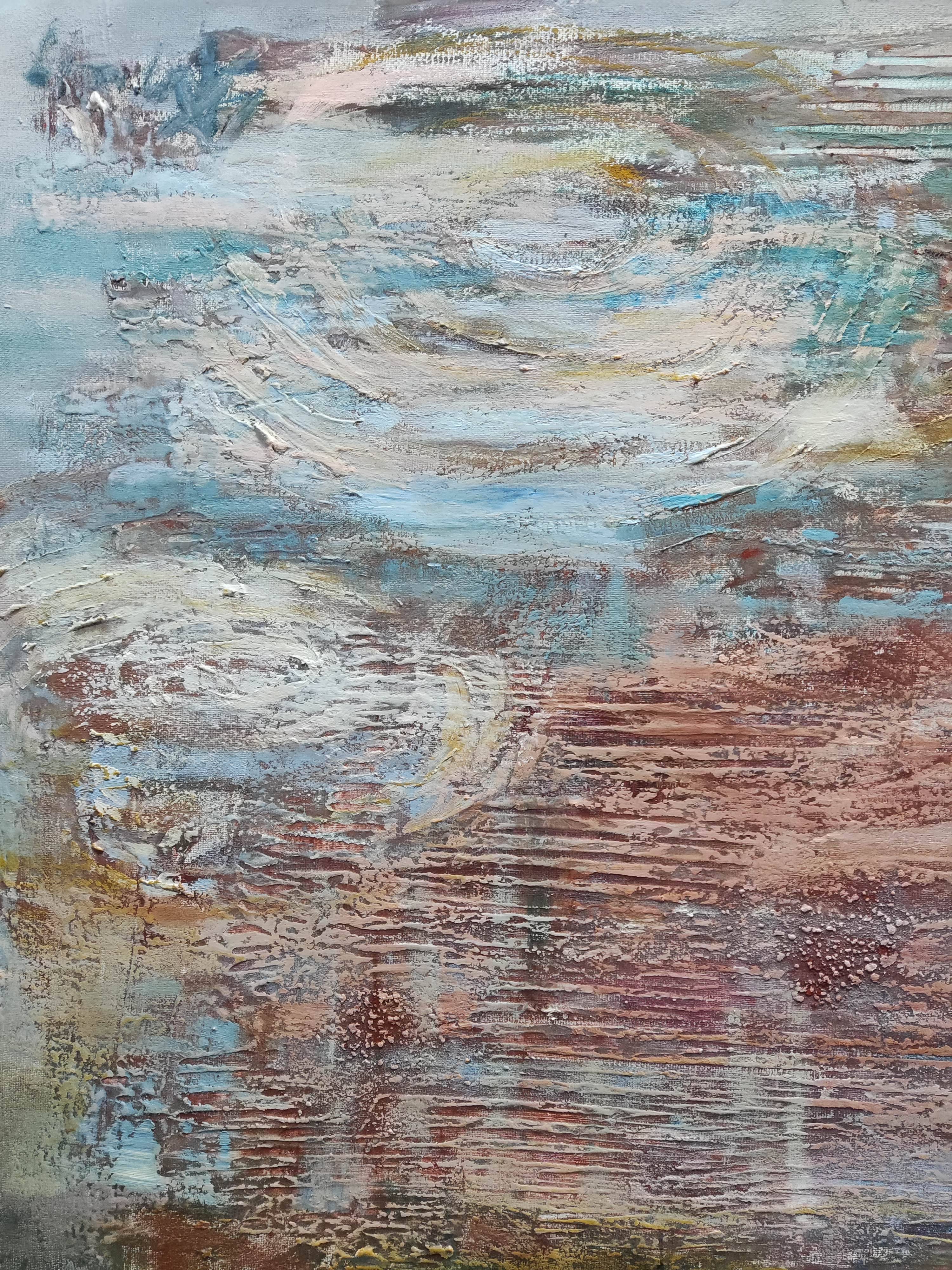 "Zapomniany ląd" to intrygujący obraz, który przenosi widza do świata abstrakcji, zainspirowanego impresjonistycznym podejściem do malarstwa. Przedstawia bliżej nieokreśloną wyspę, której kształty i granice są płynne i tajemnicze. Artysta zastosował swobodny gest pędzla, co nadaje dziełu lekkości i dynamiki, charakterystycznych dla malarstwa impresjonistycznego.
