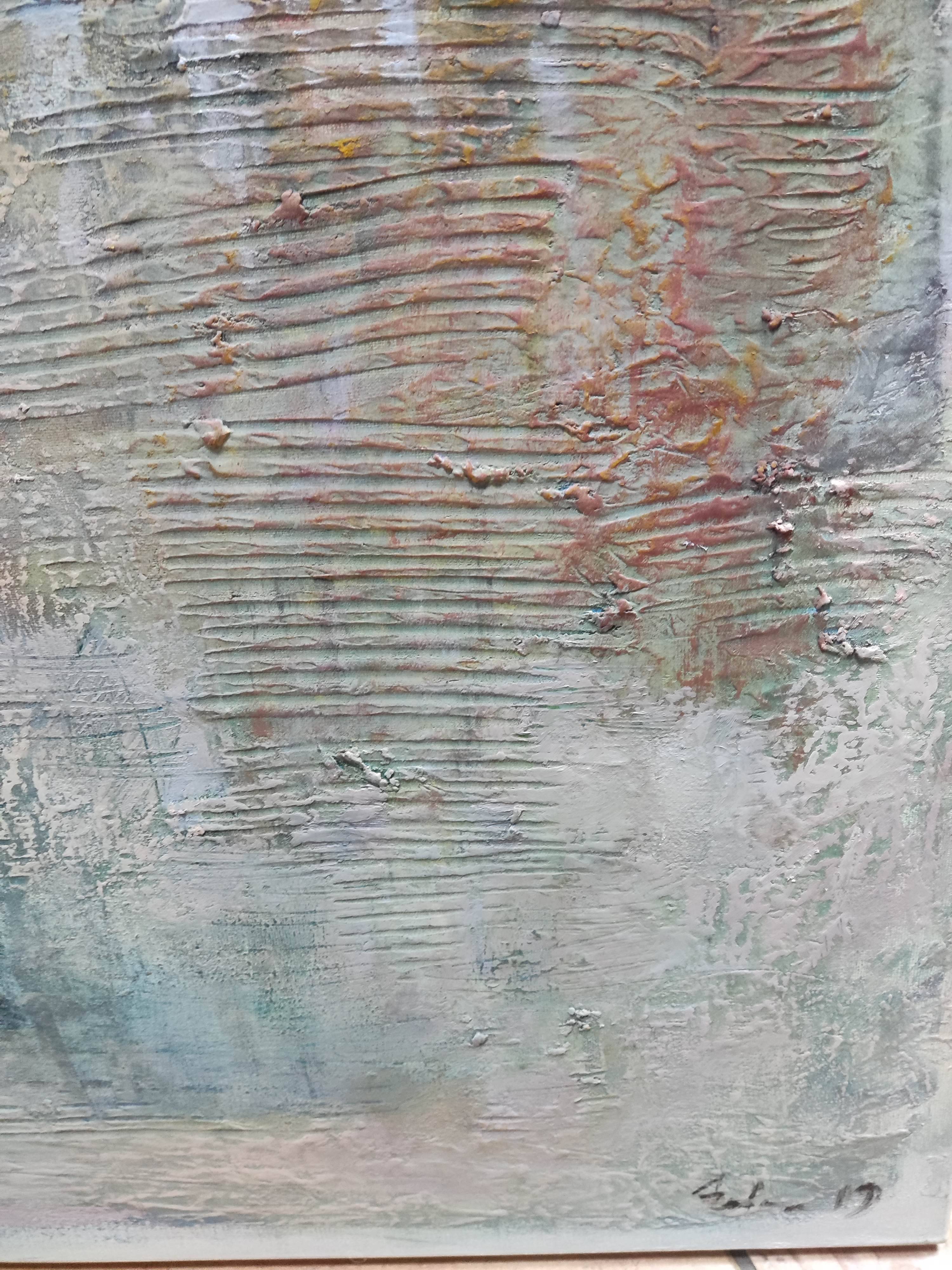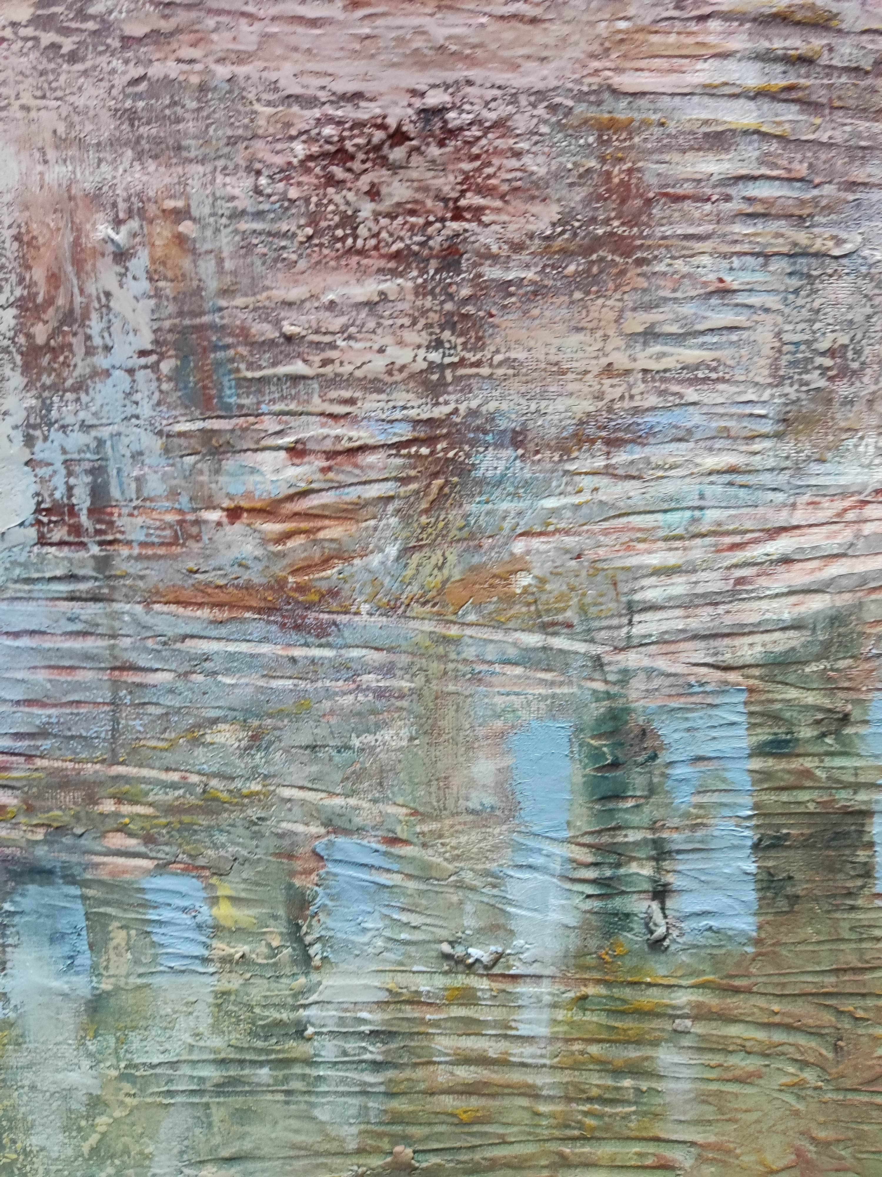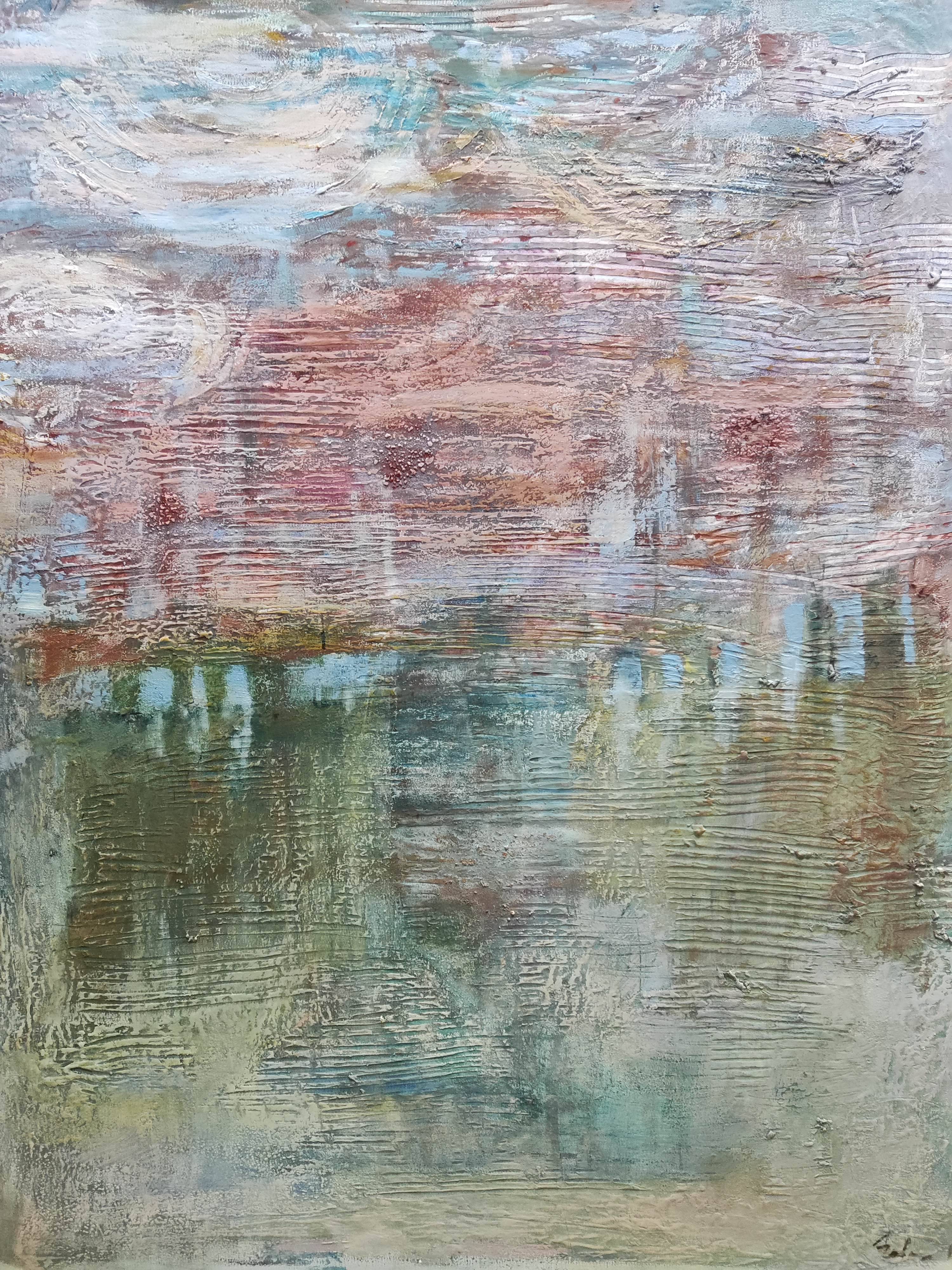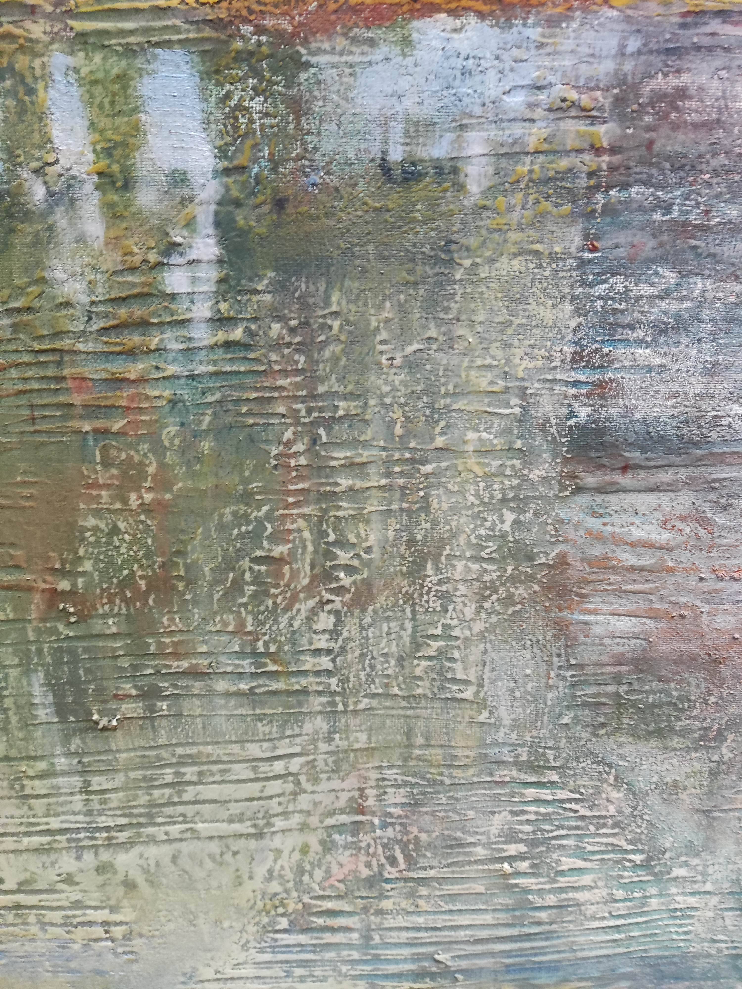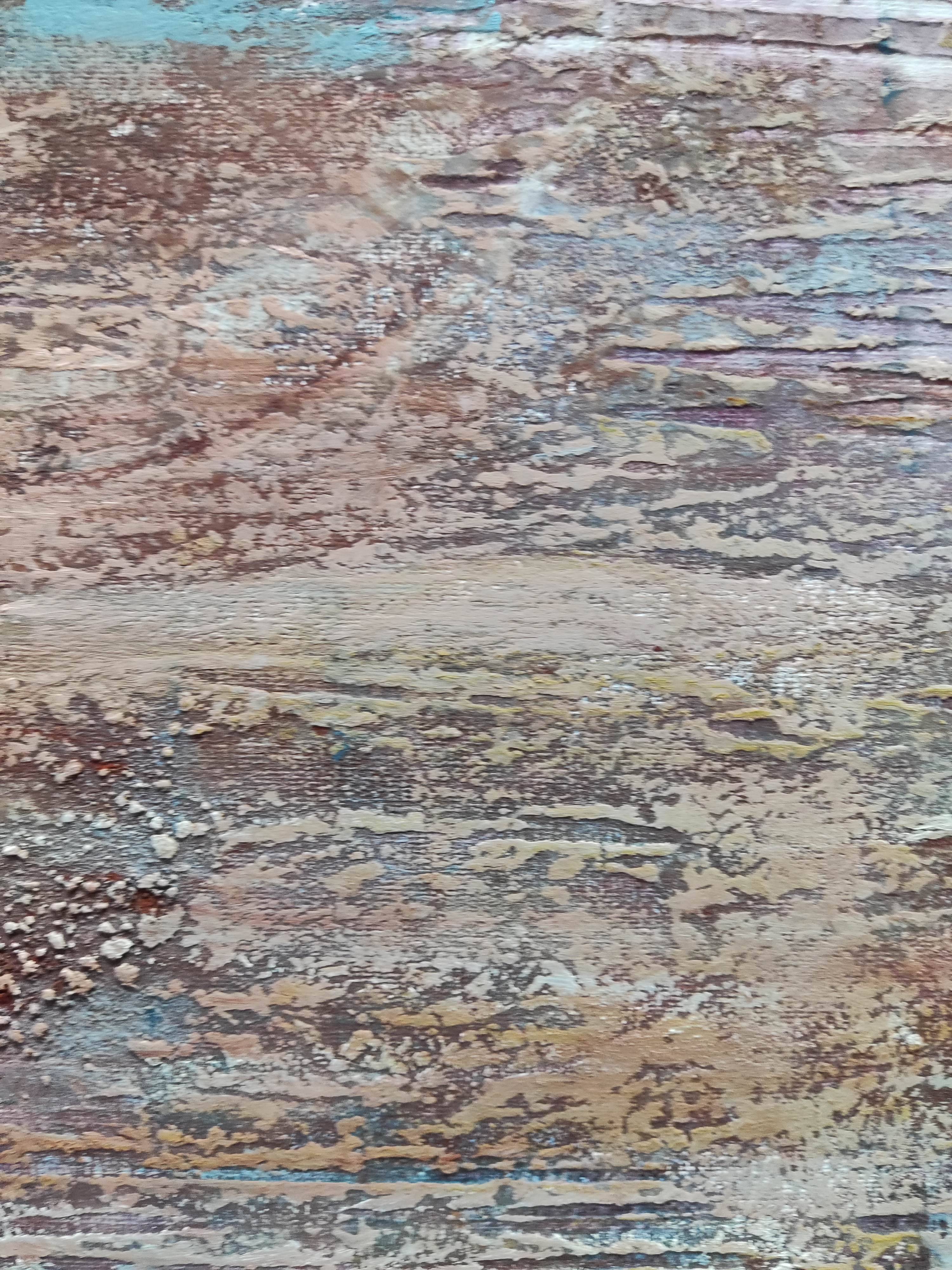 "Zapomniany ląd" to intrygujący obraz, który przenosi widza do świata abstrakcji, zainspirowanego impresjonistycznym podejściem do malarstwa. Przedstawia bliżej nieokreśloną wyspę, której kształty i granice są płynne i tajemnicze. Artysta zastosował swobodny gest pędzla, co nadaje dziełu lekkości i dynamiki, charakterystycznych dla malarstwa impresjonistycznego.